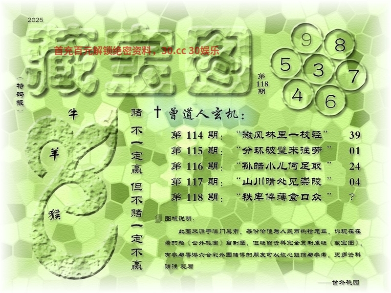 | 114期:▲单双中特▲【单数】开:兔39准 |